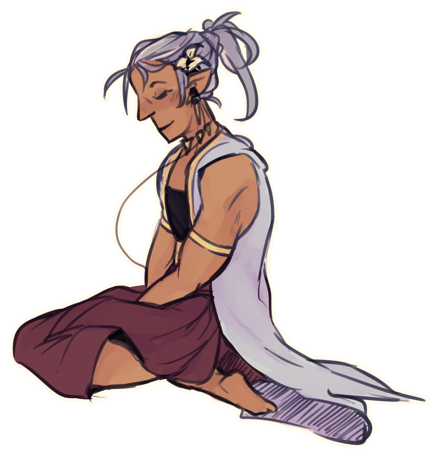 Gandy was raised in Ul'Dah by his mother, where they lived far out of sight of the Ishgardian nobility on her sex worker's paycheck. He grew up exploring the city while his mother took clients, an unavoidable lack of stability, but beloved by Sultansworn and street food vendors alike. Despite their detachment from Coerthas, he and his mother picked up the Halonic faith from their experiences there, and as Gandy got older he became a humble - if scatterbrained - priest for those practicing in Thanalan.